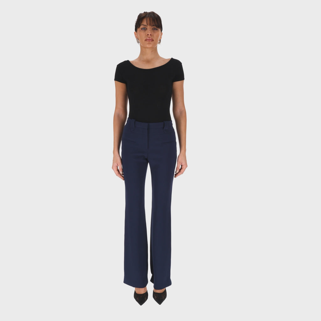 Navy 'Serge' trousers cut in a flattering fit, flared along the calves.