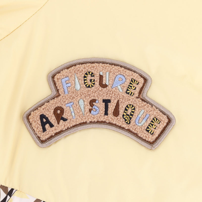 Designed with cashmere embroidered patches with 'Hermes Paris' to the sleeve and 'Figure Artisique' to the other side of the jacket.