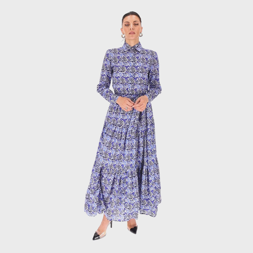 Bellini Tiered Printed Cotton-voile Maxi Shirt Dress In Conchiglie. Size XS