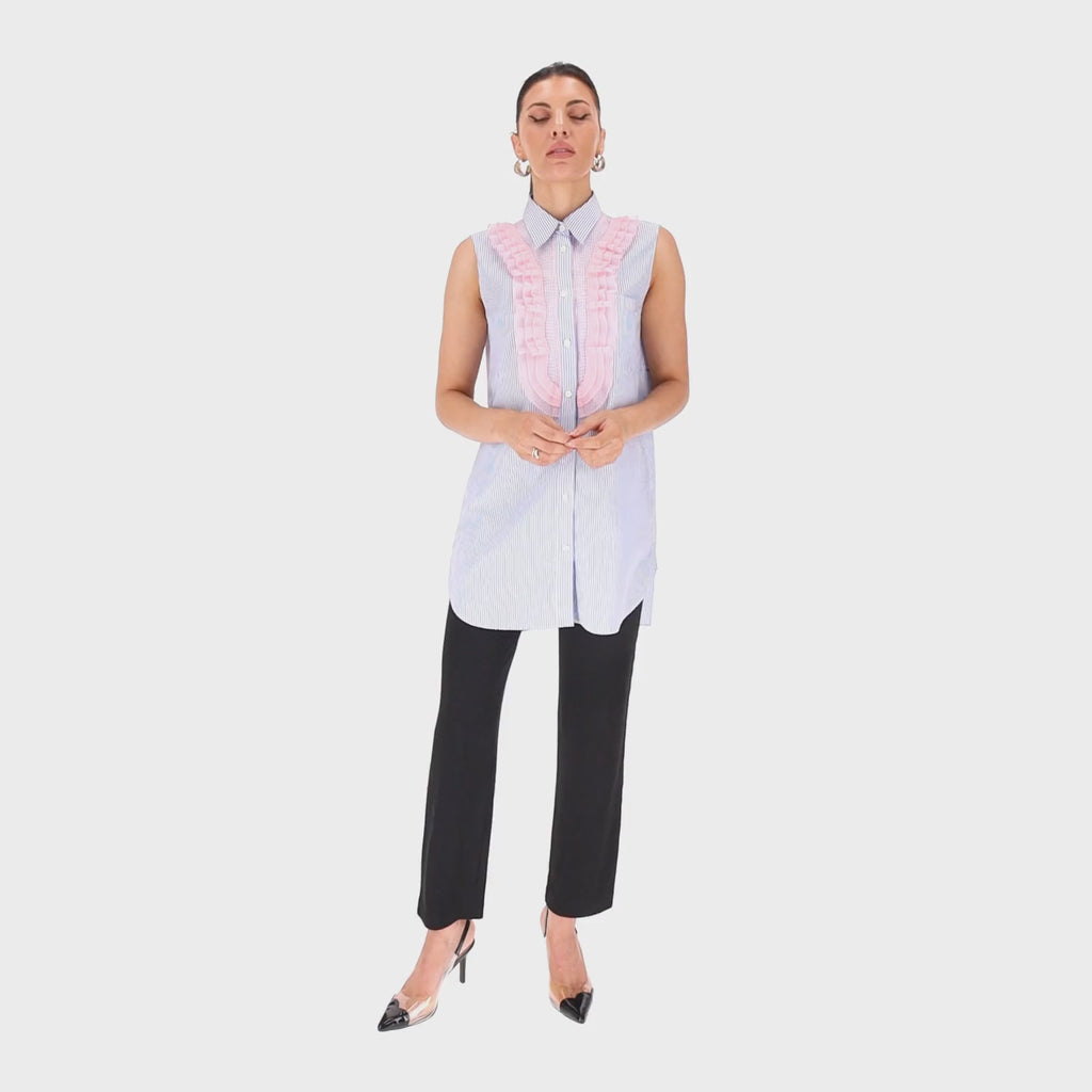 Prada Striped Ruffle Front Top